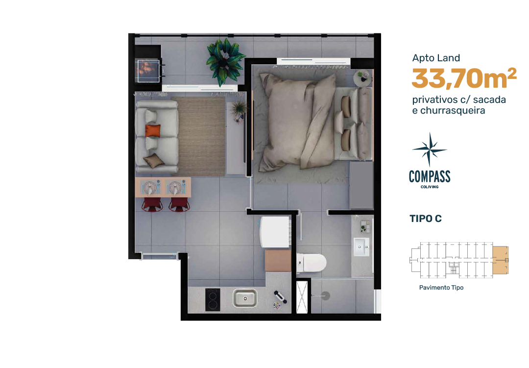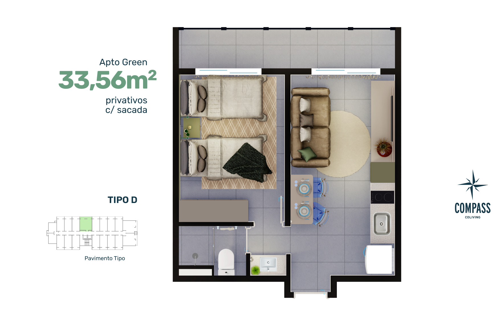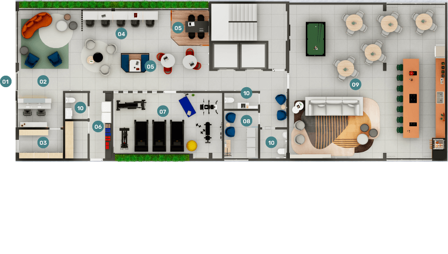 Áreas compartilhadas para coliving sem custo extra;